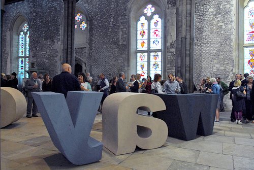 Look the other way This was a commission by artSOUTH for collaborations at Winchester Great Hall. The text sculpture was displayed in reverse. On opening night, student singers from the university performed as a collaboration.